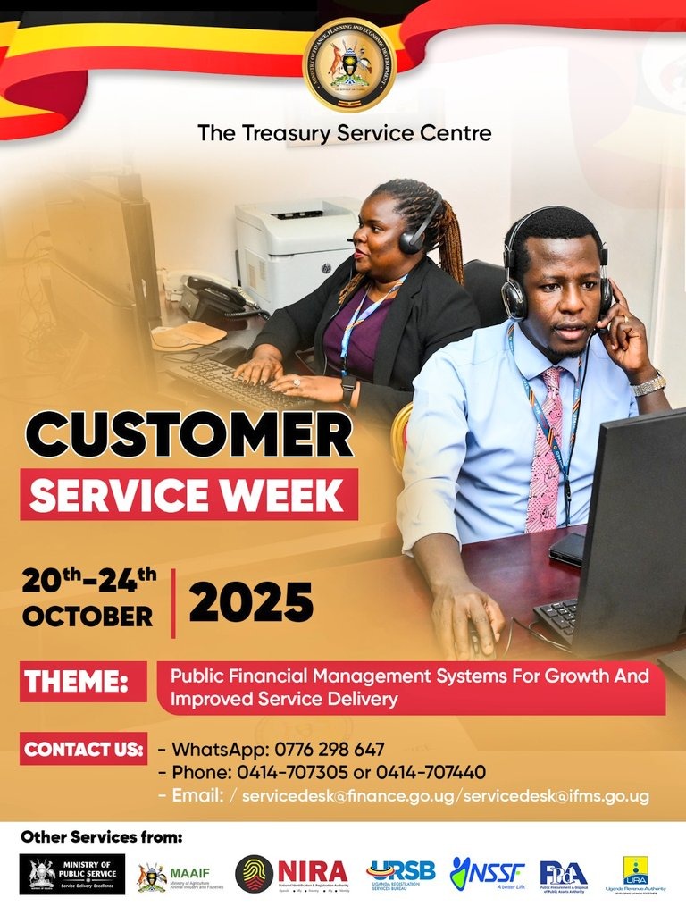 The Uganda Registration Services Bureau (URSB) is playing a key role in the “Customer Service Week” hosted by the Treasury Service Centre under the Ministry of Finance, Planning and Economic Development from 20th to 24th October 2025. The service week, celebrating the theme “Public Financial Management Systems for Growth and Improved Service Delivery”, brings together a variety of government agencies committed to improving citizens’ access to public services.