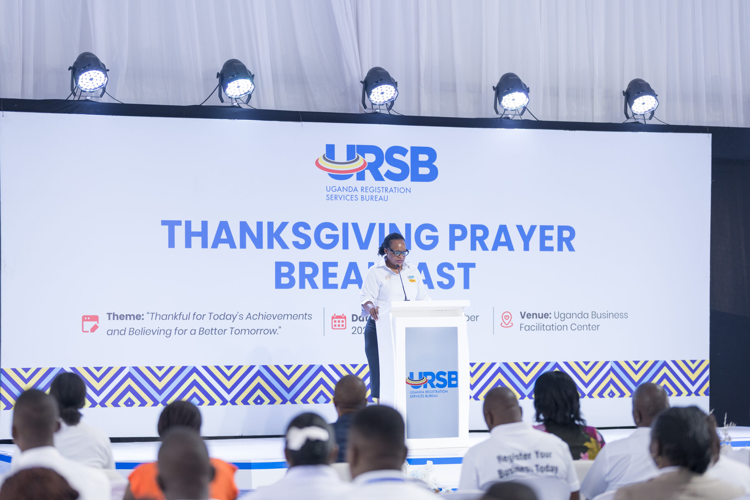 The Uganda Registration Services Bureau (URSB) held its Annual Thanksgiving Prayer Breakfast with a heartfelt message of gratitude from Registrar General Ms. Mercy K. Kainobwisho.
