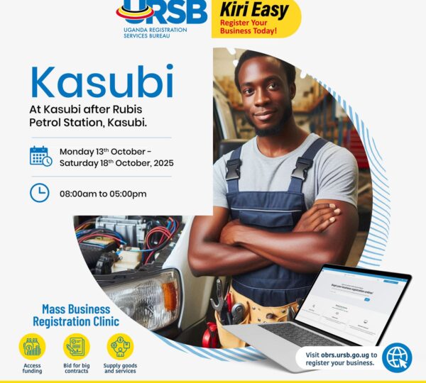 A URSB business registration clinic is currently set up in Kasubi this week to bring formalization services closer to the local business community. Entrepreneurs can visit the clinic for on-site services, including business name registration, legal document support, and advisory services on intellectual property. This initiative is part of URSB’s ongoing efforts to help informal businesses gain legal recognition and access opportunities for growth.